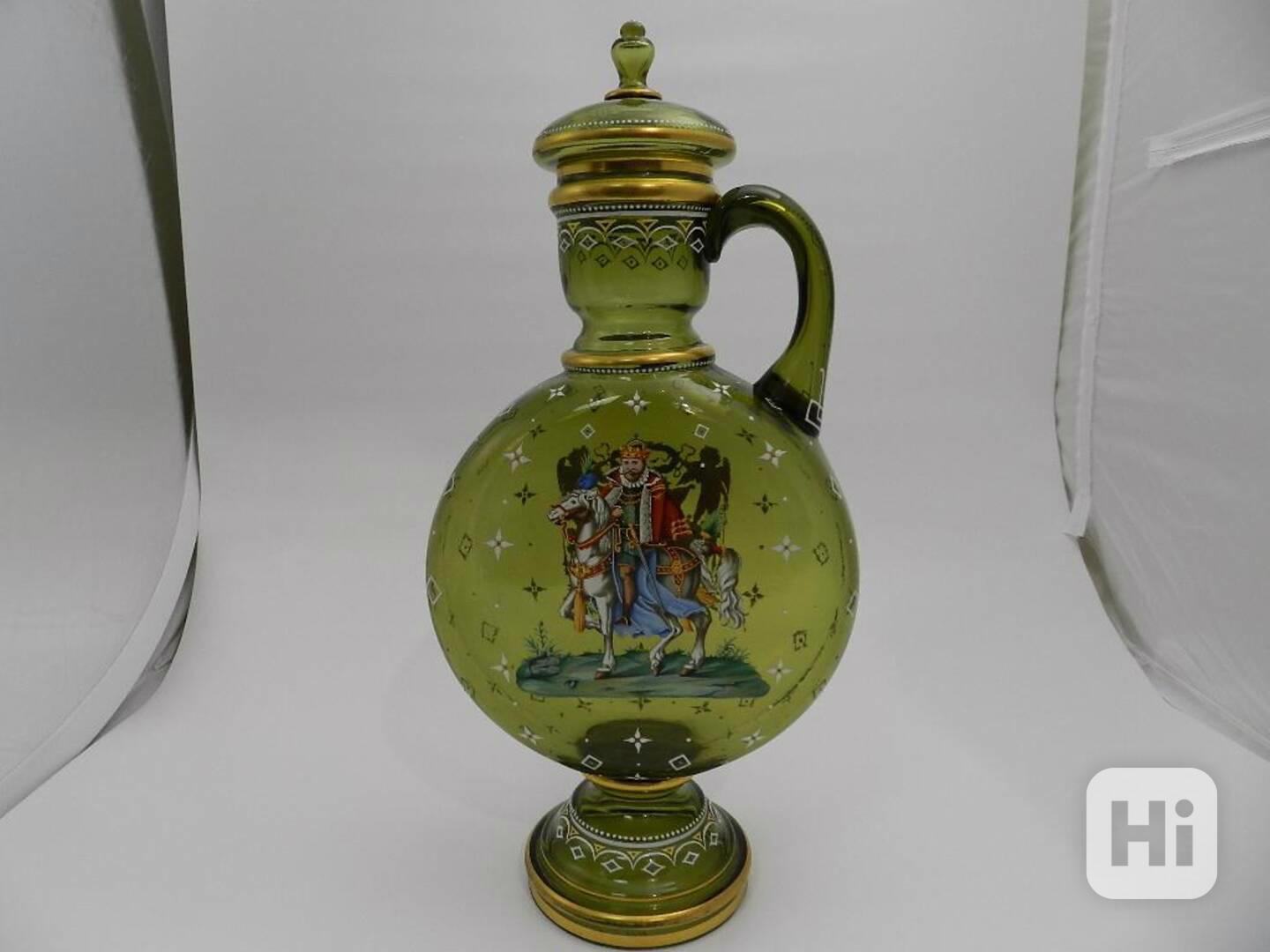 Luxusní novorenesanční obří Džbán s poklopem, lesní sklo, ruční malba - poslední čtvrtina 19 stol, počátek 20 stol. Severní Čechy.
