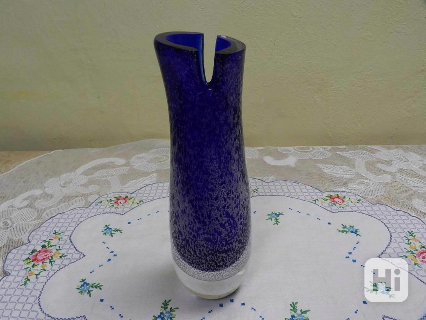 Zajímavá Autorská Váza, hutně tvarované sklo, barva modrá, 2 pol. 20 stol.