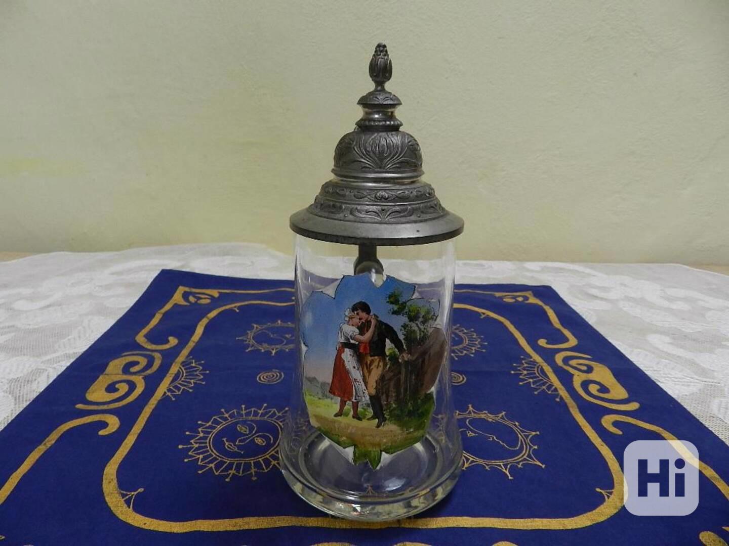 Hezký velmi starý Korbel s poklopem, ruční malba, Prodaná Nevěsta.