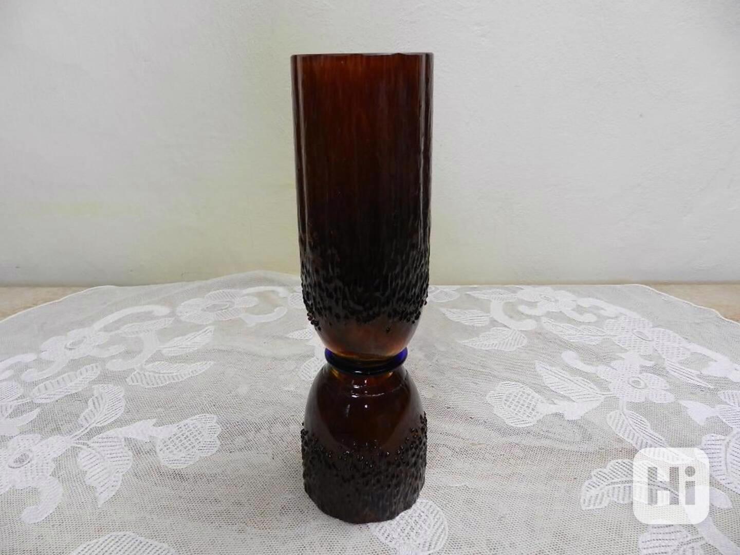 Zajímavá oboustranná Autorská Váza z tmavého přejímaného skla - Čechy, 2 pol. 20 stol.