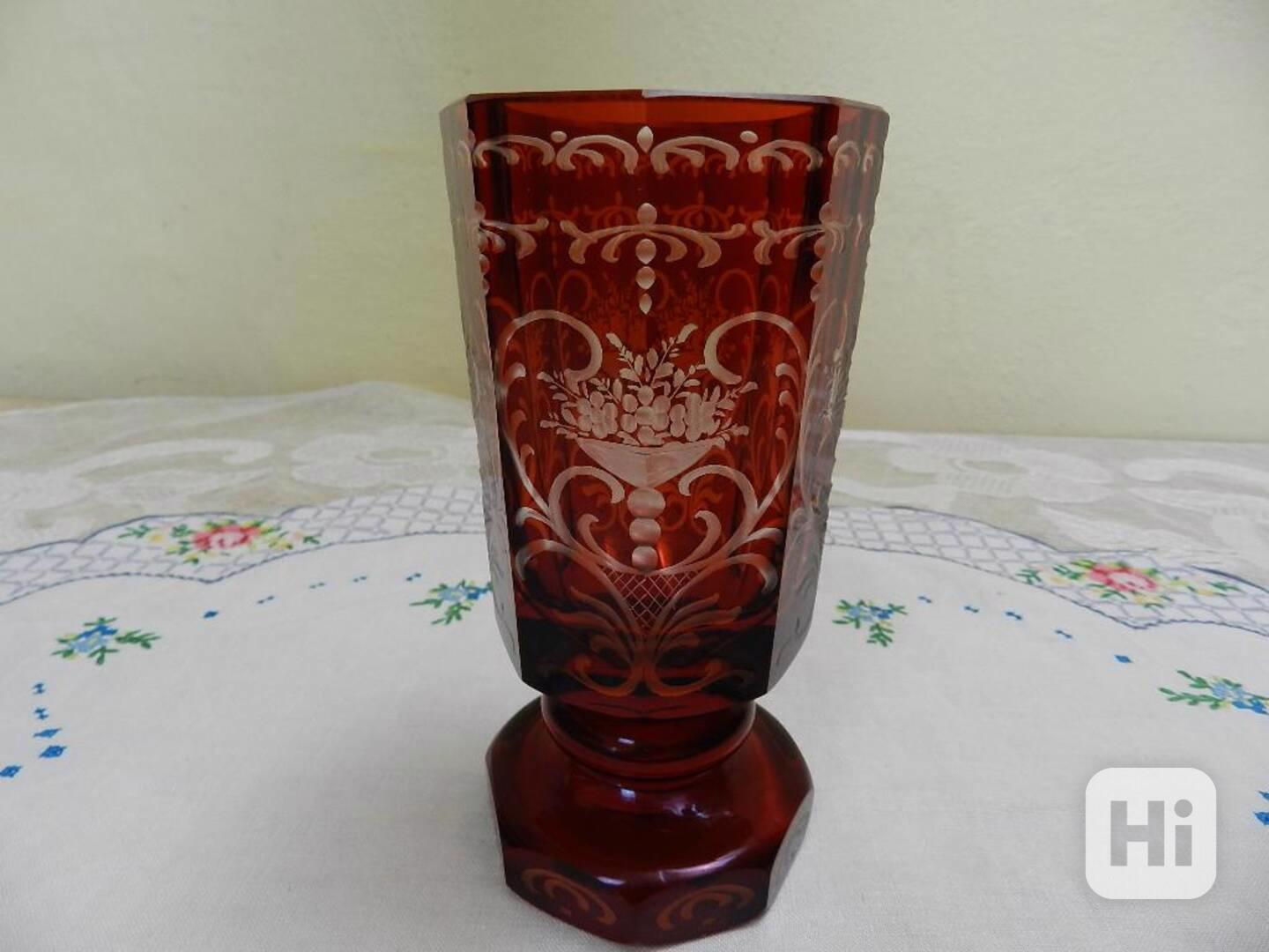 Krásná bohatě zdobená Sklenice rubínová lazura 19st
