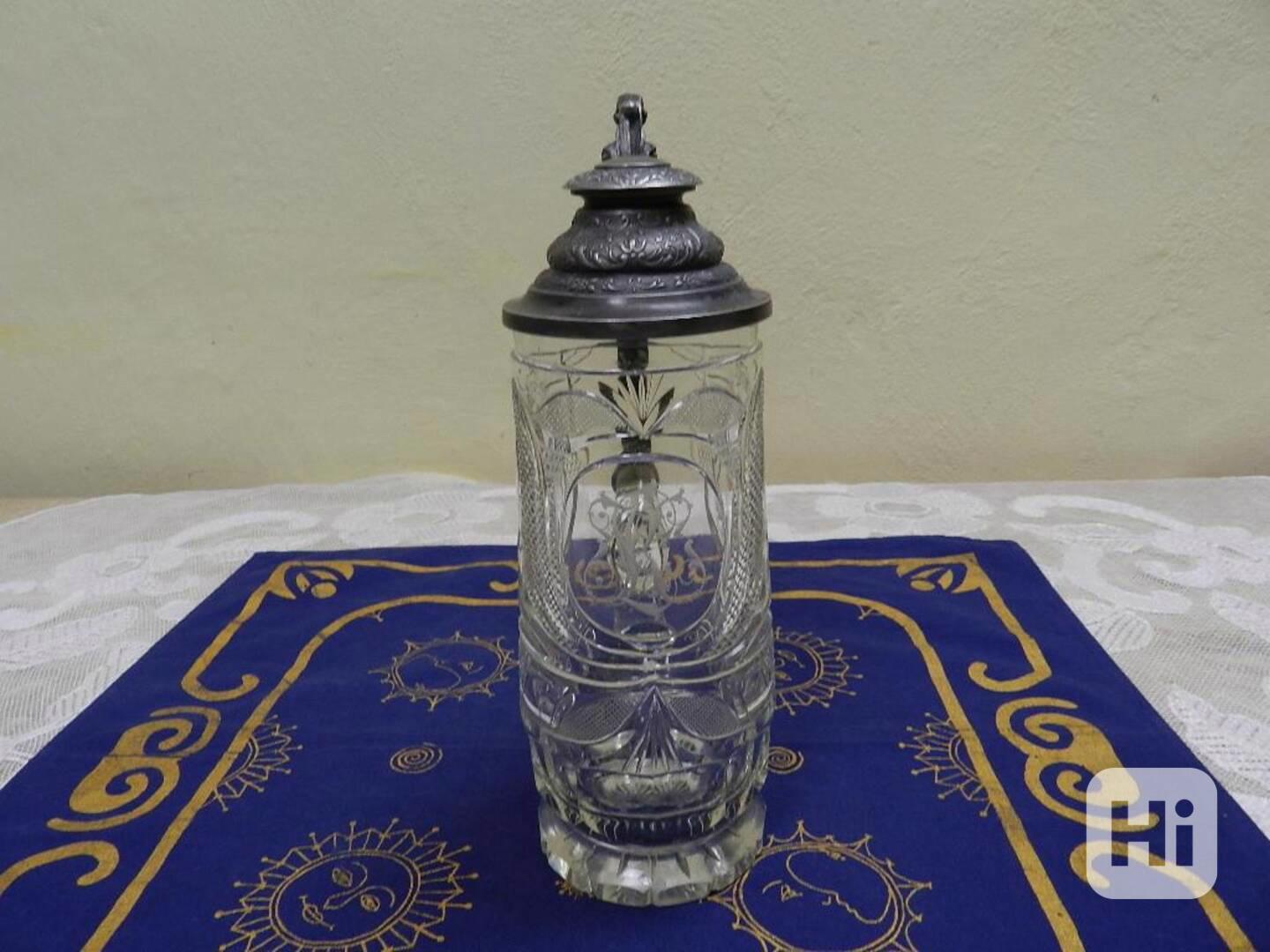 Starý broušený bohatě zdobený Korbel Krýgl cejch Jelen