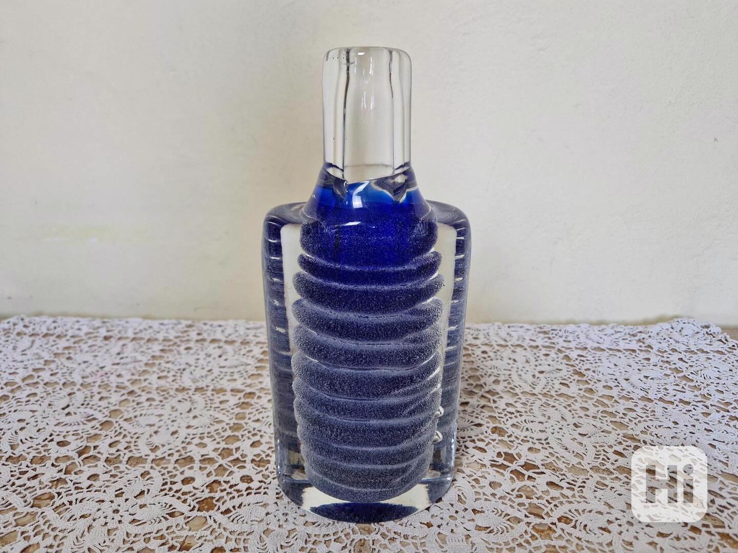 Modrá Váza z hutně tvarovaného skla - ladislav Paleček, Škrdlovice, 2 pol 20 stol.Rozměry: výška 29cm, hmotnost 3800g.
