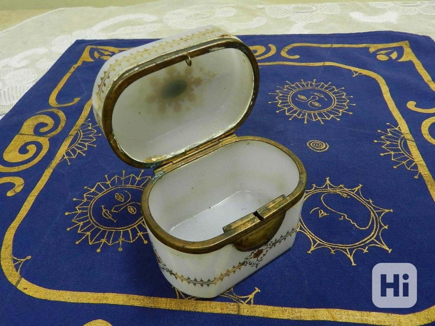 Hezky zdobená, zlacená opálová Dóza s pantem, menší velikost, Biedermeier - Čechy, kolem 1850.