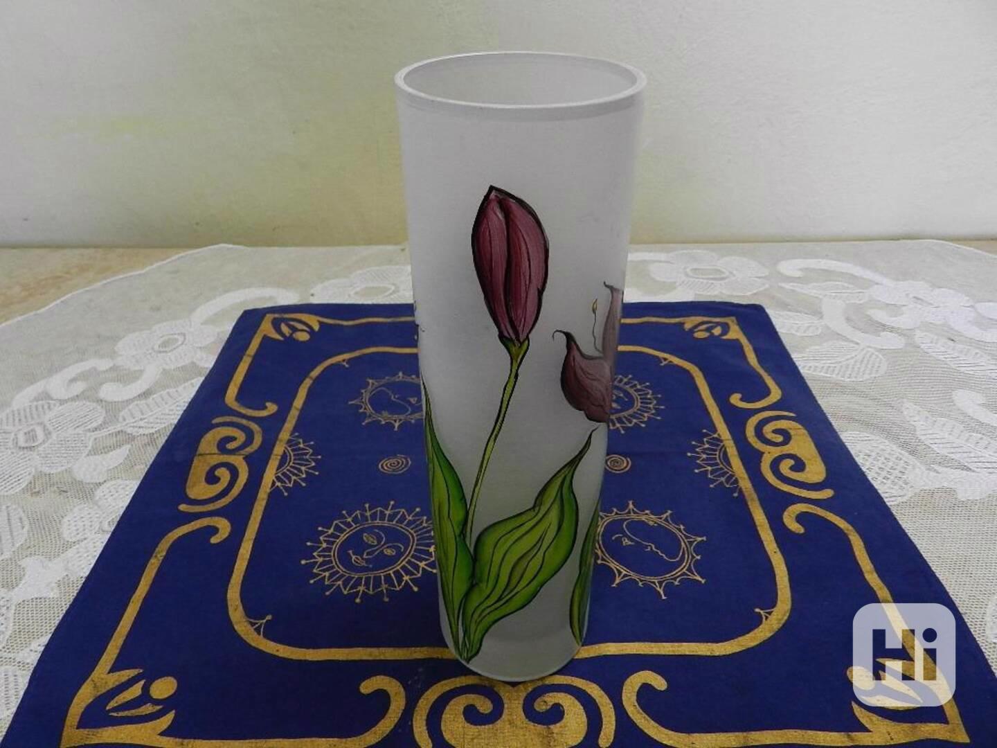Hezká ručně malovaná Autorská Váza, matované sklo, Signováno ve spodní části, 20 stol.