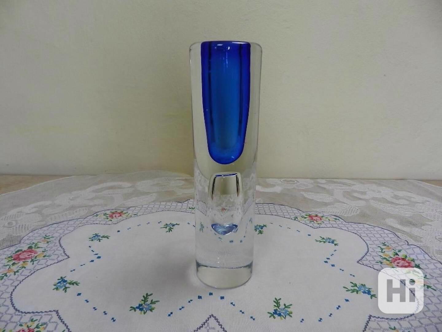 Autorská váza s bublinou, modro-čiré sklo, Čechy, 2 pol. 20 stol.