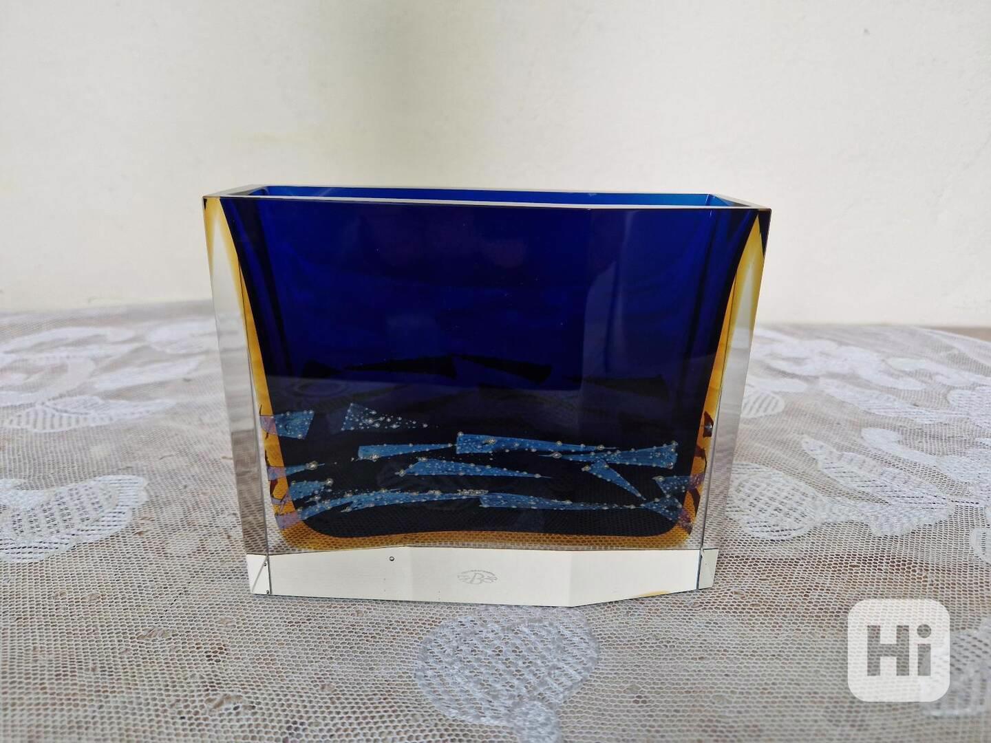 Broušená váza se stříbrnou fólií - Značeno Exbor Czechoslovakia, návrh Pavel Hlava, 1960, špičkový stav!