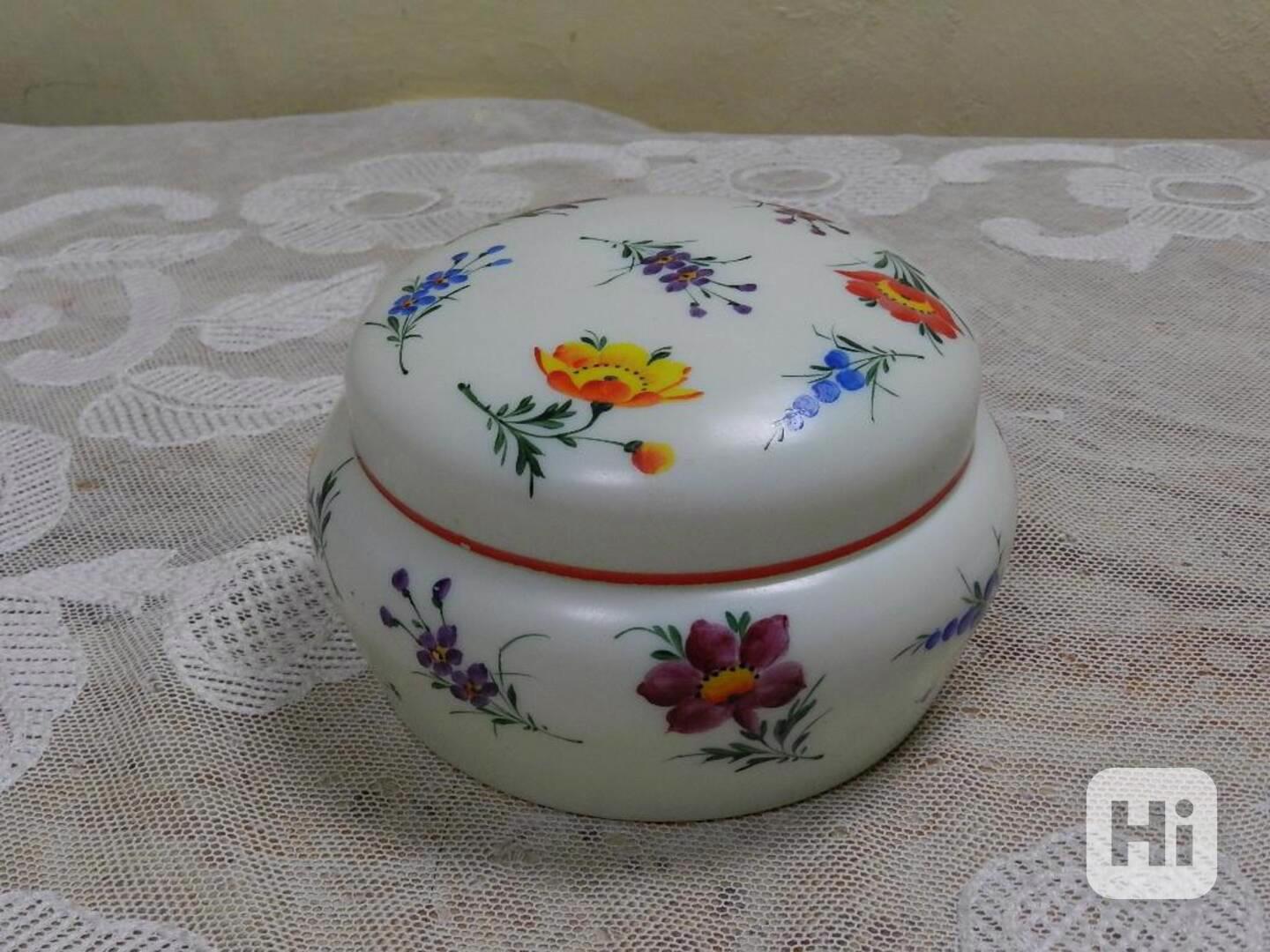 Krásná velmi stará ručně malovaná Dóza Květiny mléčné sklo