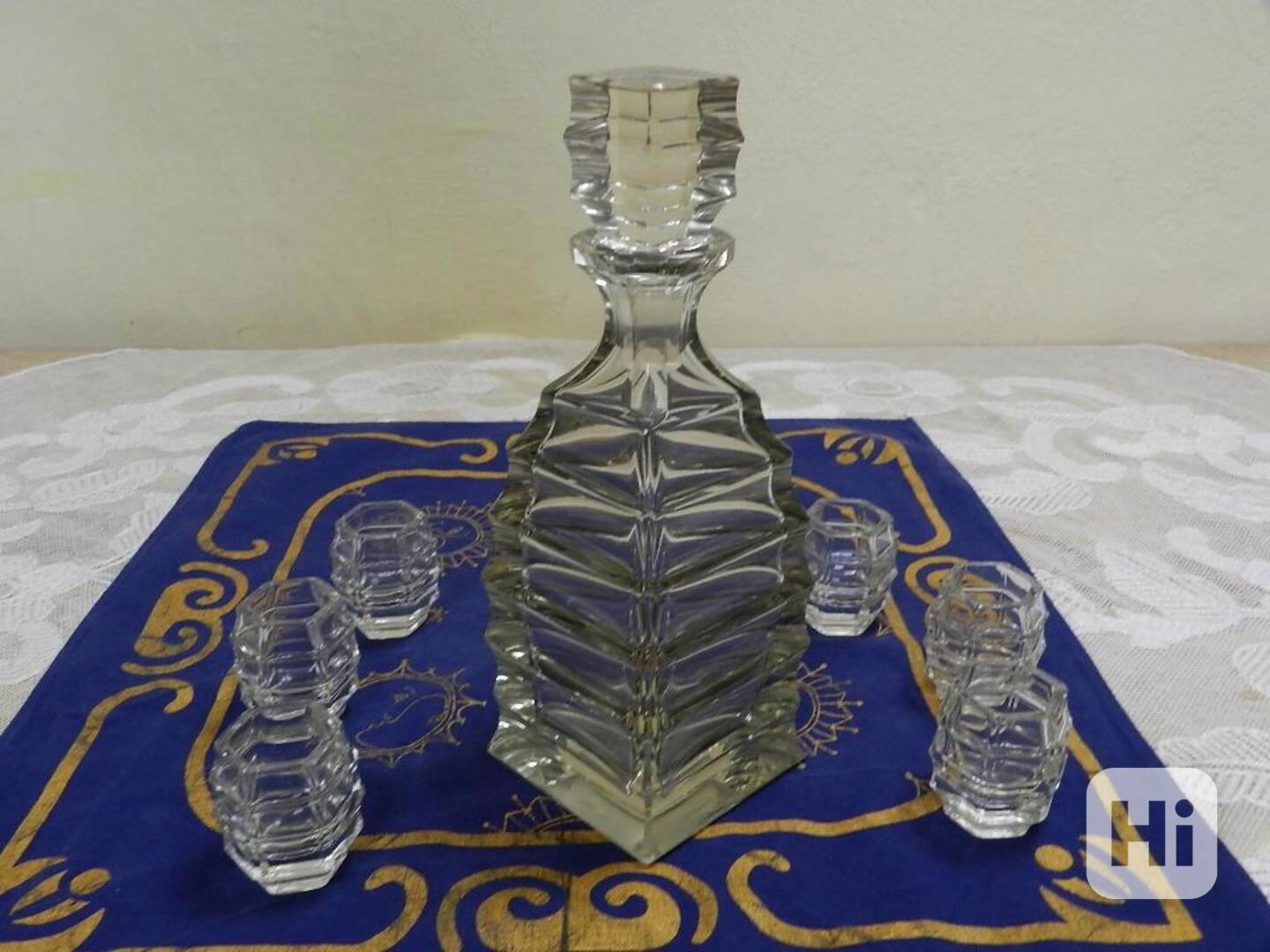 Luxusní broušená kubistická souprava Karafa a 6 panáků