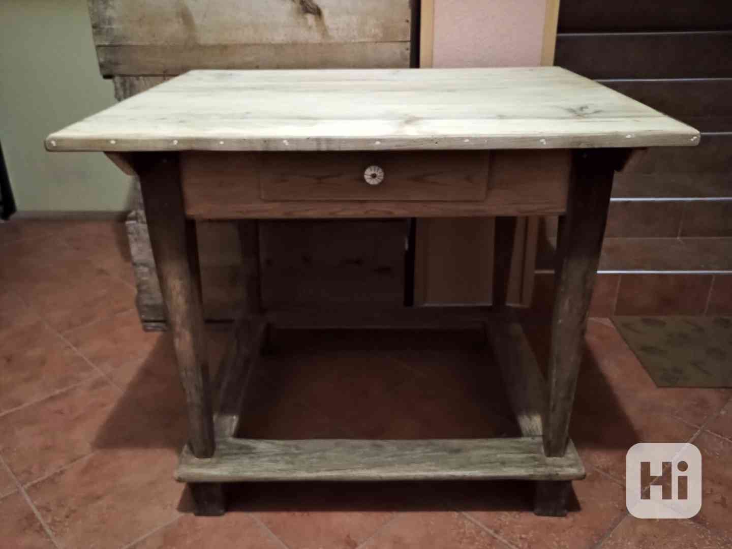 starý stůl dub/smrk po kompletní renovaci, široká trnož, bez povrchové úpravy, po dohodě možno olejem Adler Legno nebo voskem, cena + cca 10 %, šuple , velká deska, rozměry: v - 82 cm, deska 99 x 84 cm, vhodný na chalupu nebo staré hospody, pro info volat 603210073