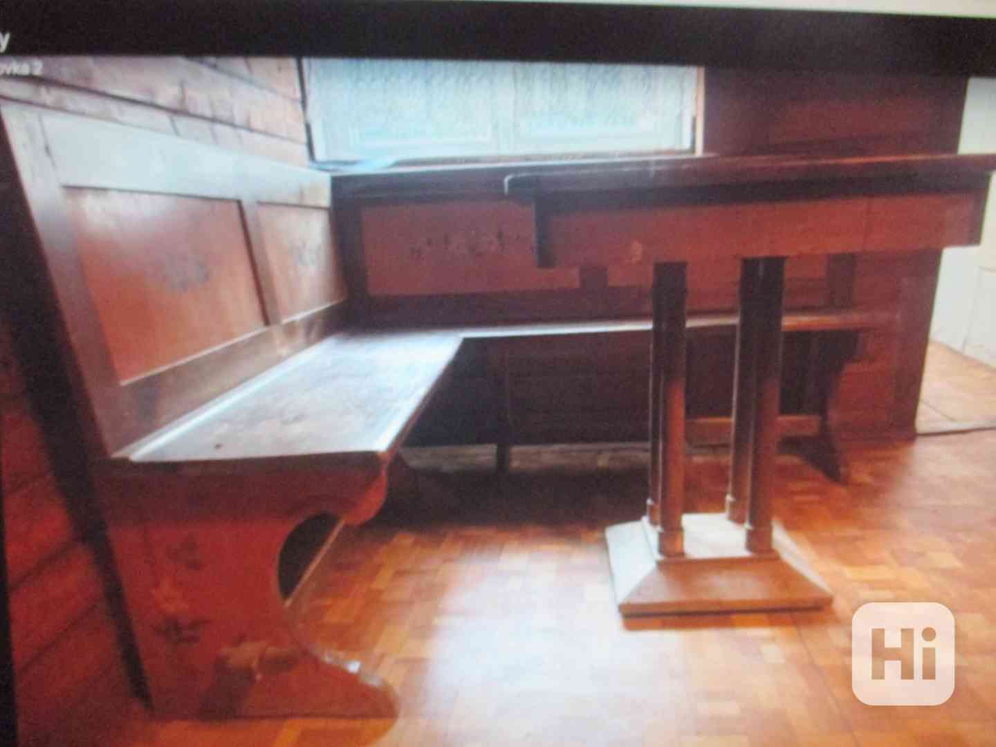 lavice má ještě 1 díl samostatně,stůl,2 židle po prababičce