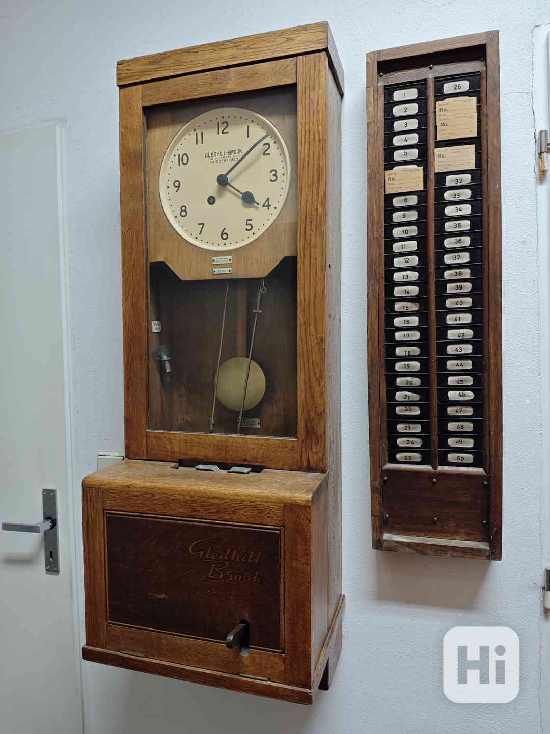 Prodám anglické píchačky (docházkové hodiny) Gledhill Brook Time Recorder, pružinové pendlovky, zcela funkční.