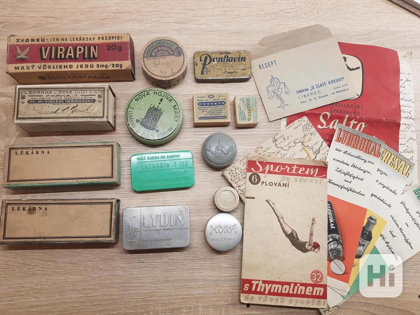 - původní lékárenské krabičky a dózy (plech, karton, plast)