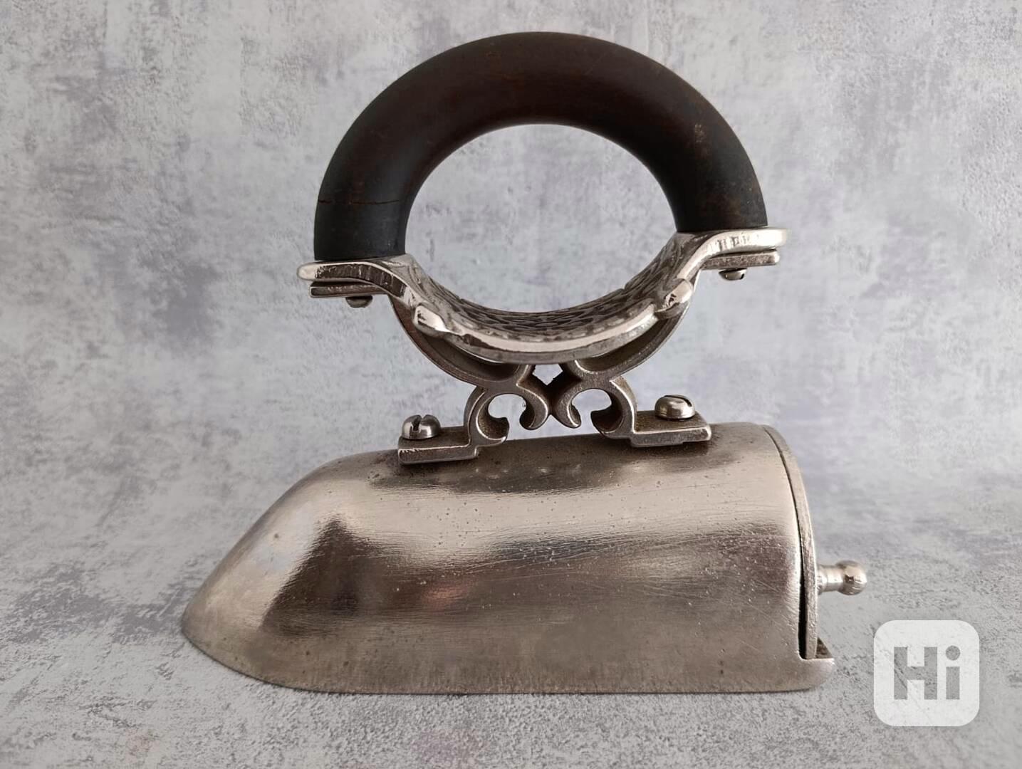 Starožitná niklovaná žehlička s nahřívacím tělískem