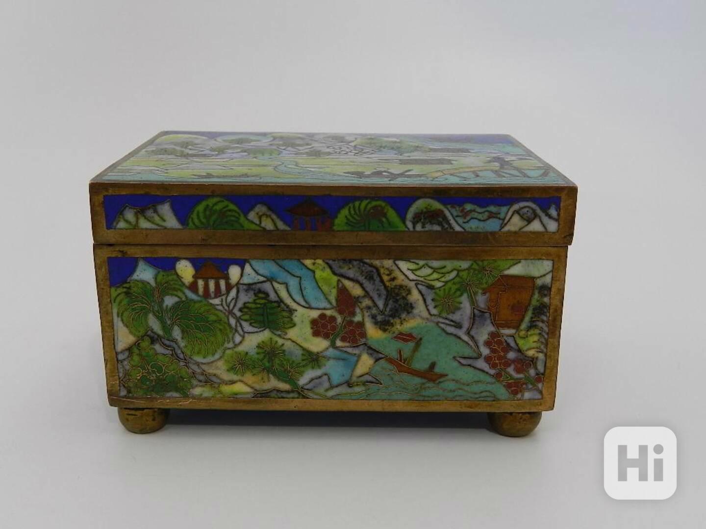 Zajímavá stará bohatě zdobená smaltovaná Krabička, Cloisonne - Čína.