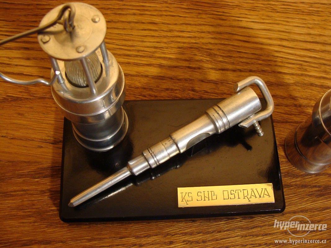 Nabízím tento dárkový předmět, který byl vyroben pro tajemníky Státní národní bezpečnosti. Celkově hezký stav - bakelit nikde neoštípán, ze spodní části značeno písmenem K. Náhradní lucerna k tomu, v jedné je i žárovka - uvnitř lehká oxidace, nezkoušeno. Zajímavý dárkový předmět, který jen tak neseženete. Rozměry podstavce asi 13,9 X 7,9 cm. Po dohodě mohu zaslat poštou.