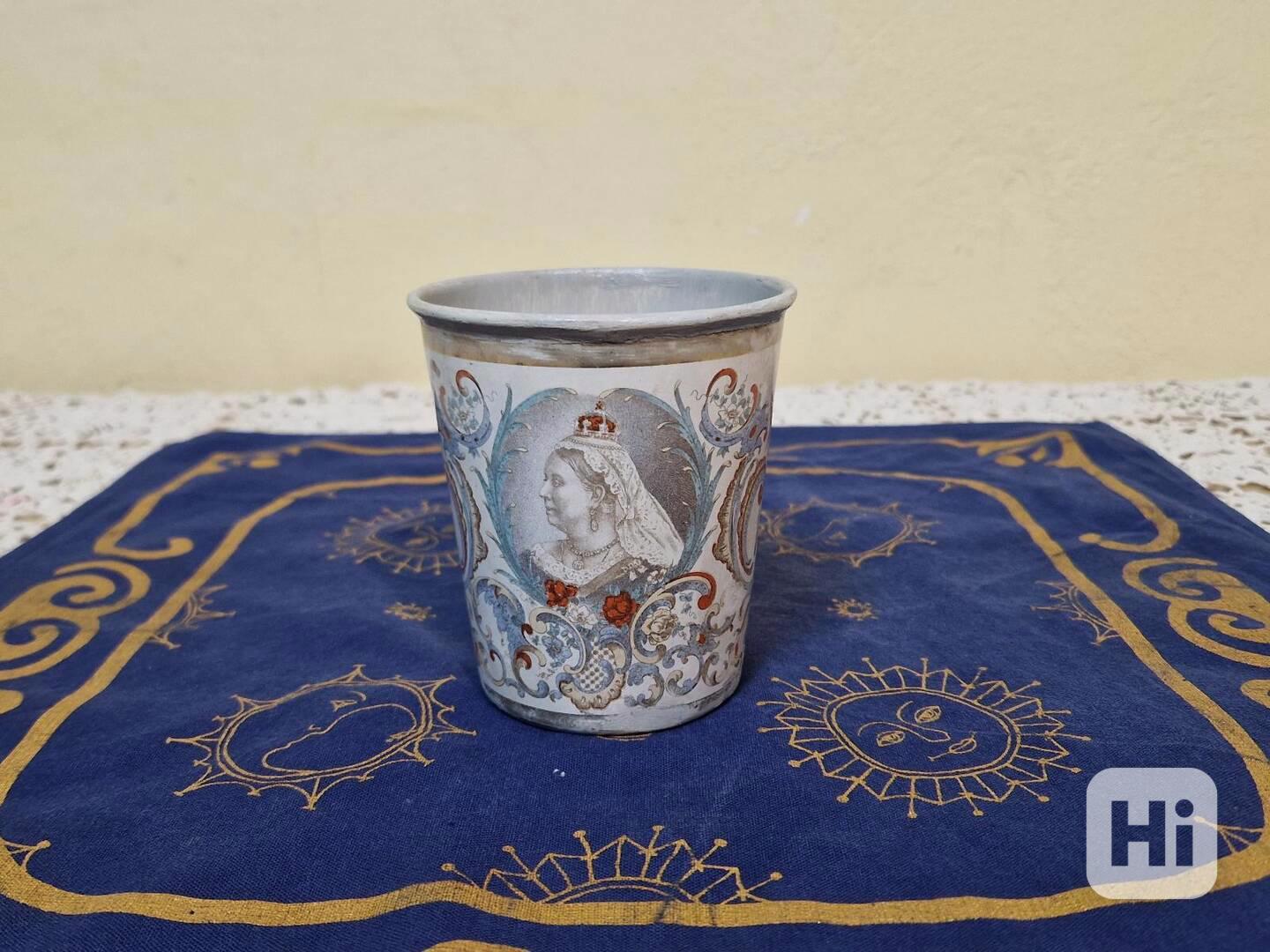 Smaltovaný plechový kalíšek, královna Viktorie, 1897.