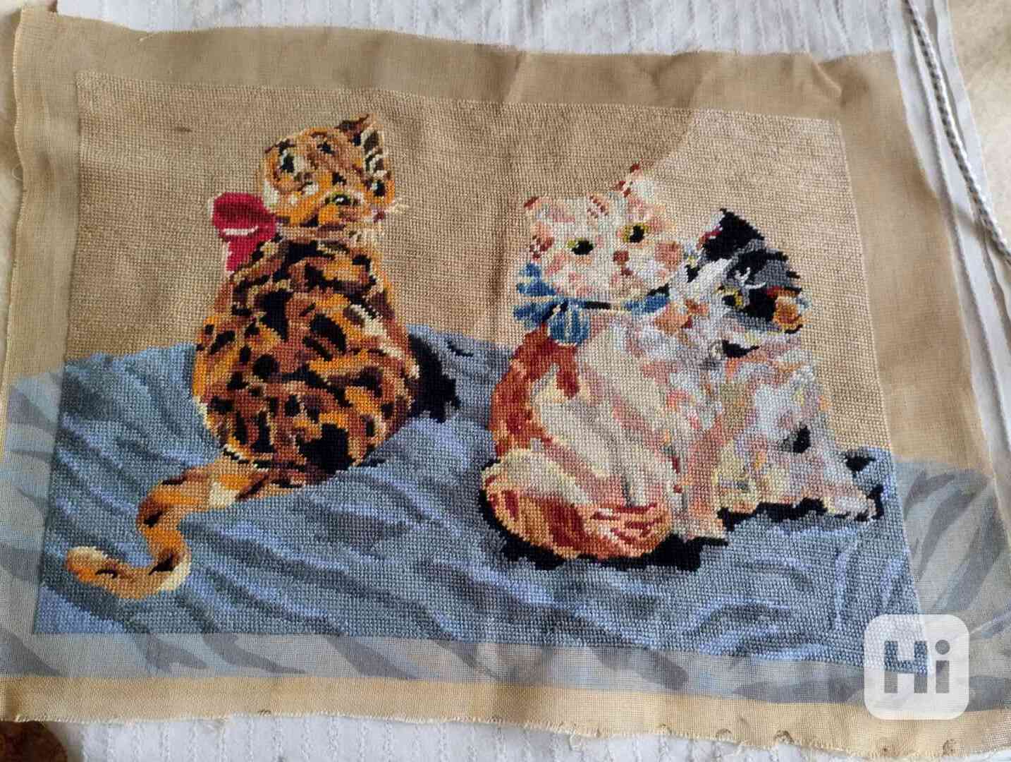 Ručně vyšívaný obraz kočičky,viz.foto,rozměr 53 x 37 cm,cena 420,-kč +