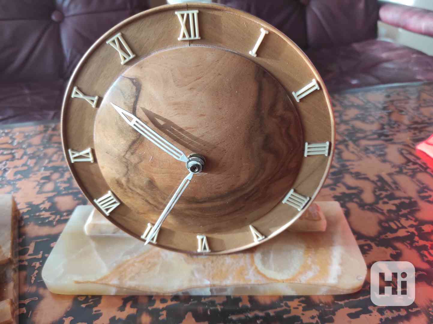 Prodám starožitné stolní hodiny na podstavci z leštěného mramoru, původní strojek nahrazen za Quartz strojek, funkční - stav viz.foto, cena 2200,-Kč, osobní převzetí v Praze 6, tel. 607666099