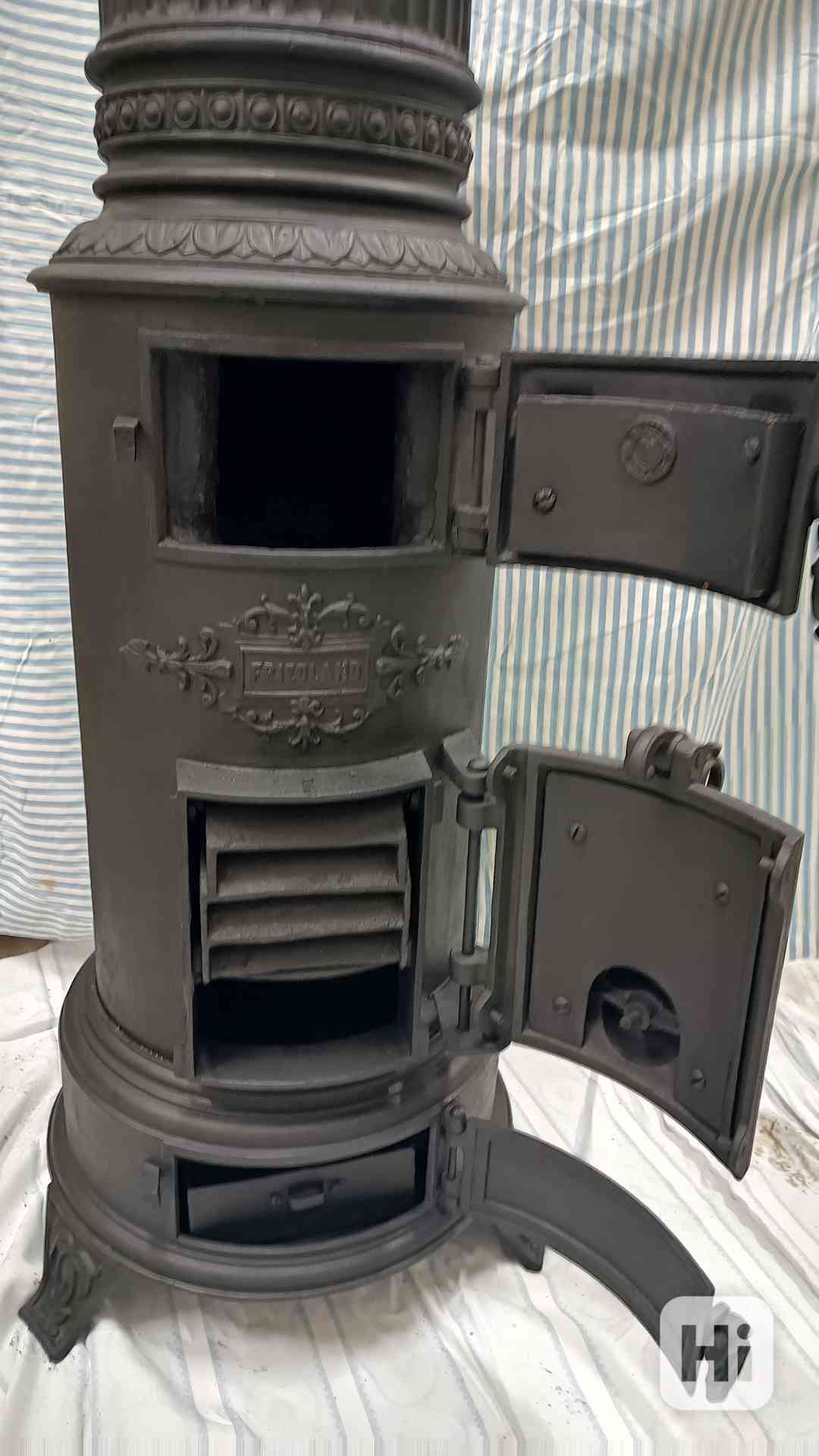 Prodám litinová kamna FRIEDLAND po celkové renovaci ,stáří víc než 100 let. Spodní díl kamen je vyložen šamotovými cihlami a přetmelena.