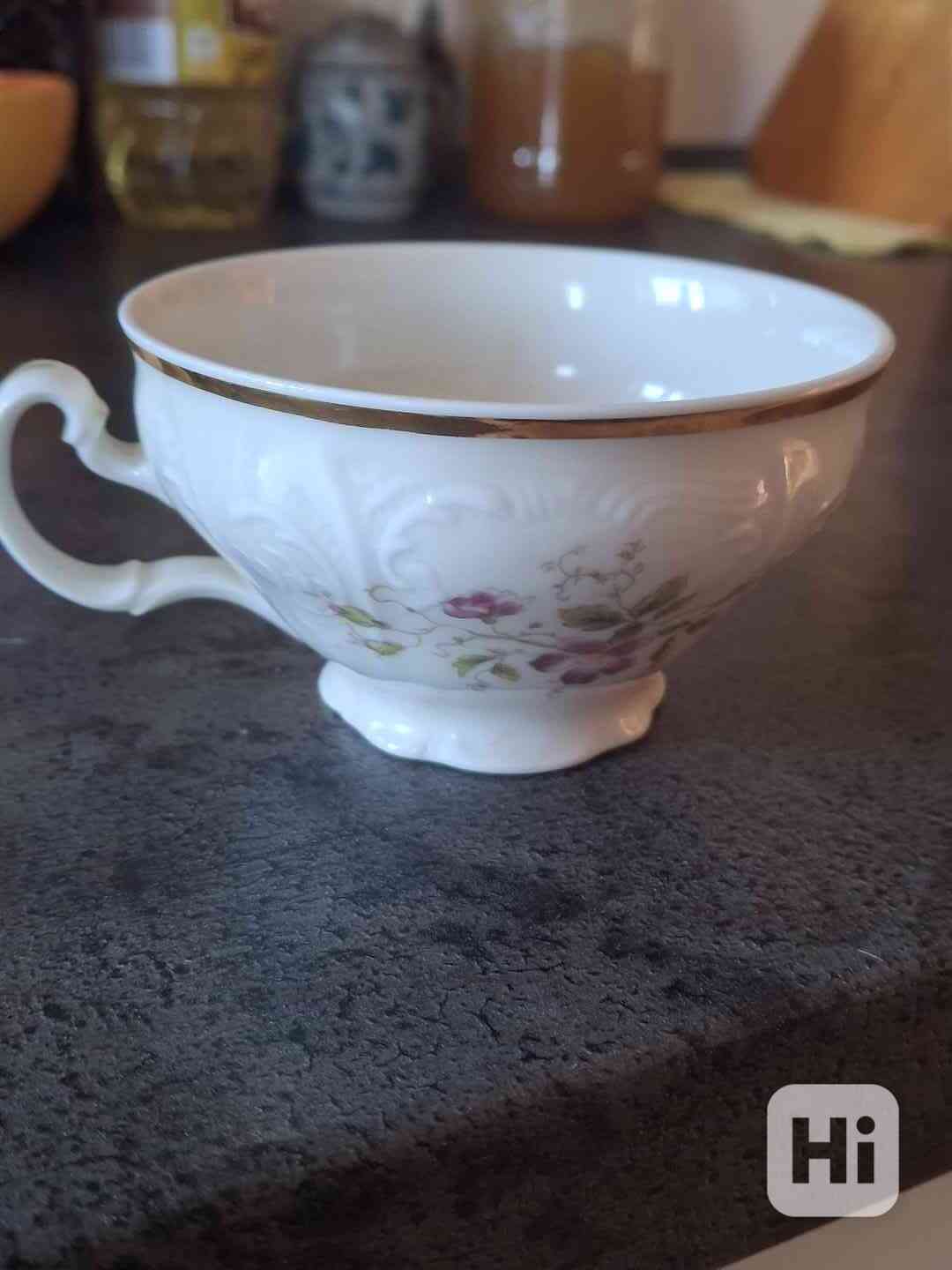 Porcelánové hrnečky na čaj s něžnými zlatými kvítky