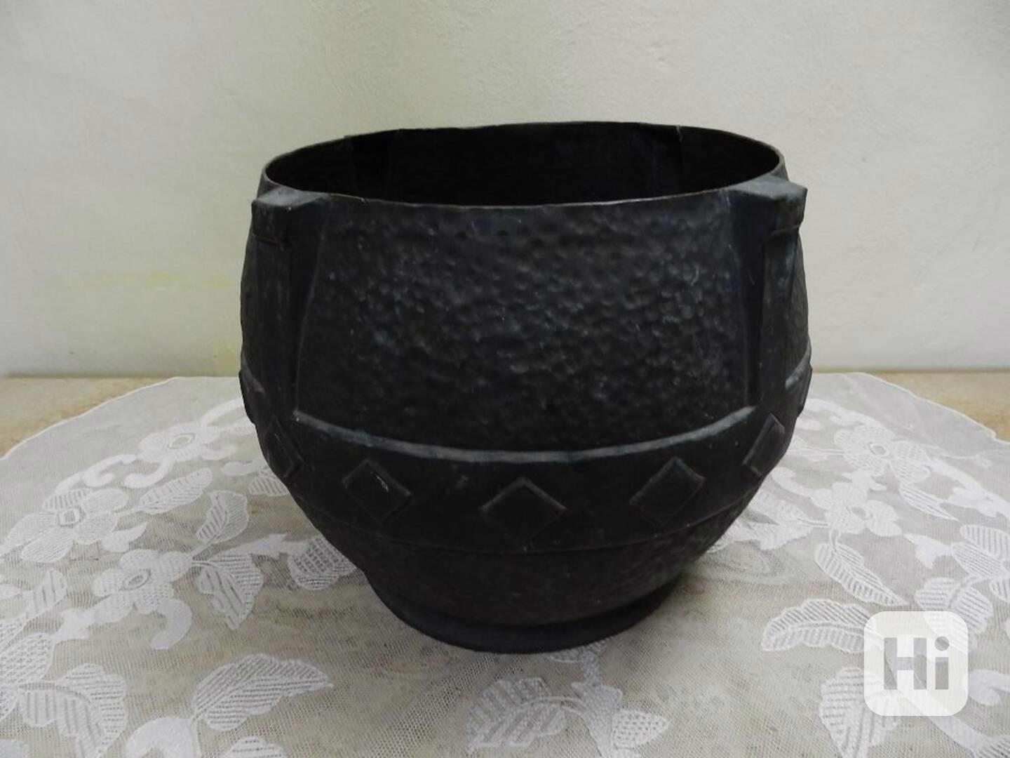 Zajímavý větší kubistický Květináč z tepaného kovu, Čechy nebo Rakousko, 1 třetina 20 stol.