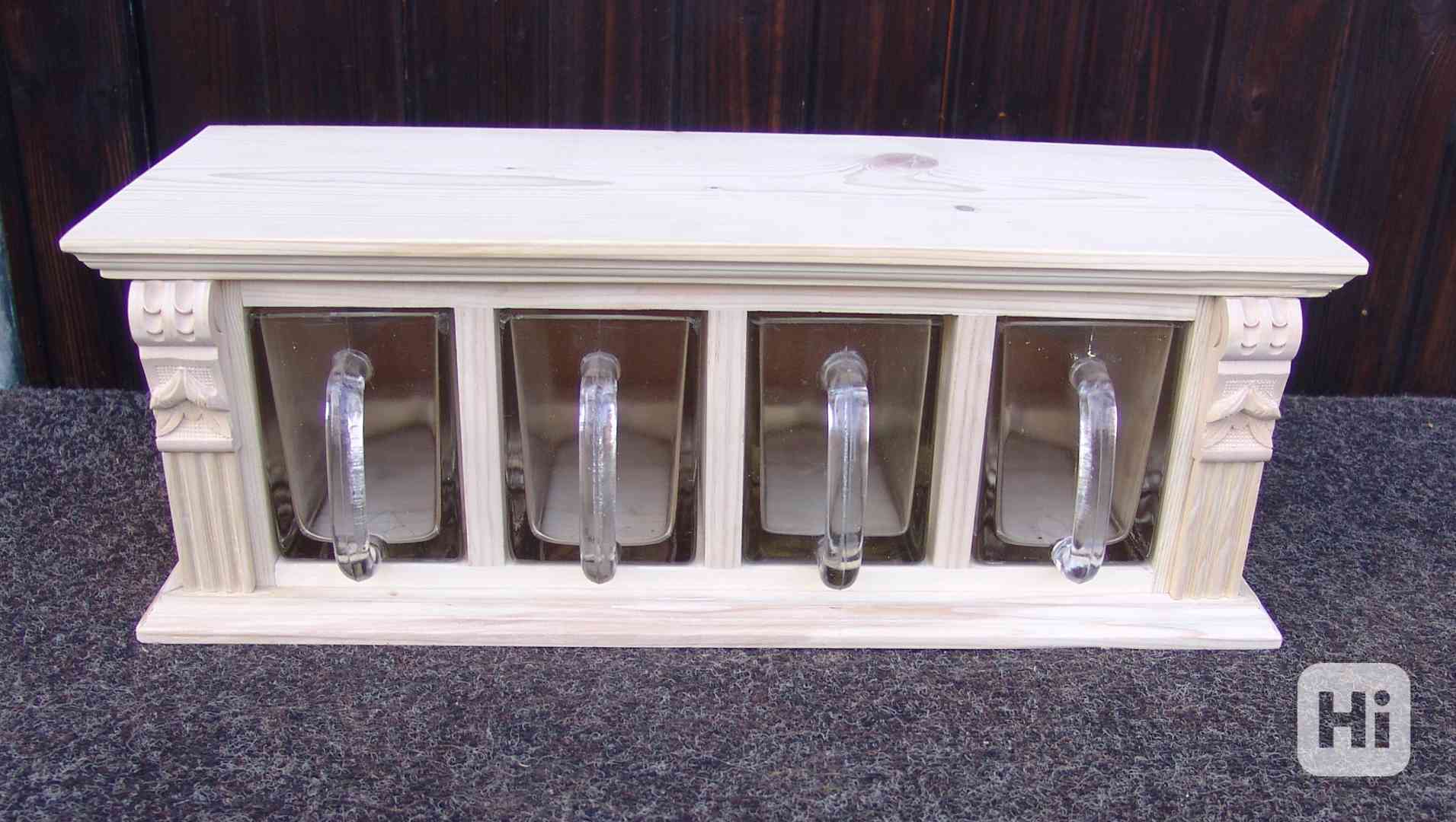 Prodám starožitné, skleněné, šuplíkové kořenky s řezbovanou poličkou bez povrchové úpravy, připravenou na finální úpravu. Jdou zavěsit na zeď, tak i jako volně stojící. Rozměry poličky 56,5cm x 23cm v 20 cm. Stav šuplíků viz. foto. V případě zájmu lze po domluvě zaslat. Cena 3 200,-Kč.
