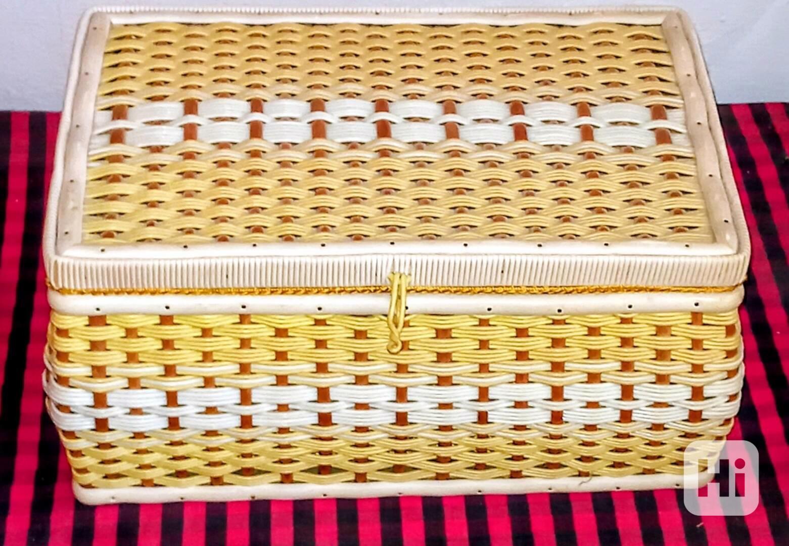 Prodám retro kazetu na šicí potřeby32 x 21 cm, výška 16 cm.