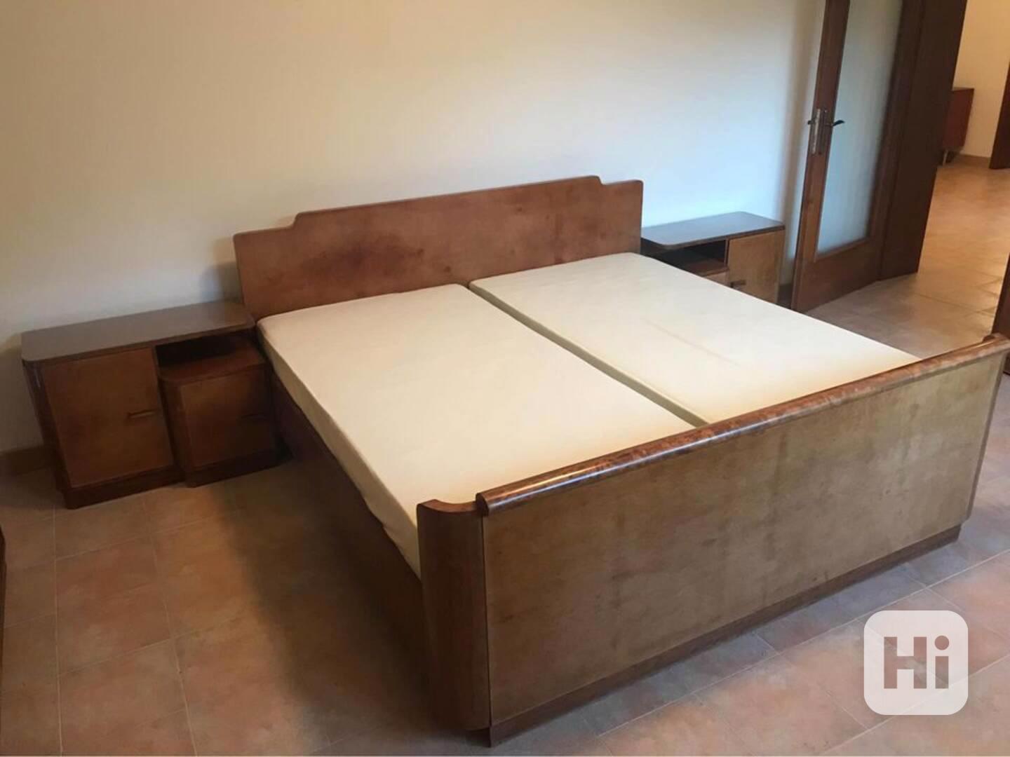 Starožitná ložnice v zachovalém stavu, kvalitní. Postel, 2x noční stolek, 2x šatní skříně, komoda i s výsuvnými šuplíky, komoda se zrcadlem. Více info, fotek, videa apod. e-mailem. Děkujeme.