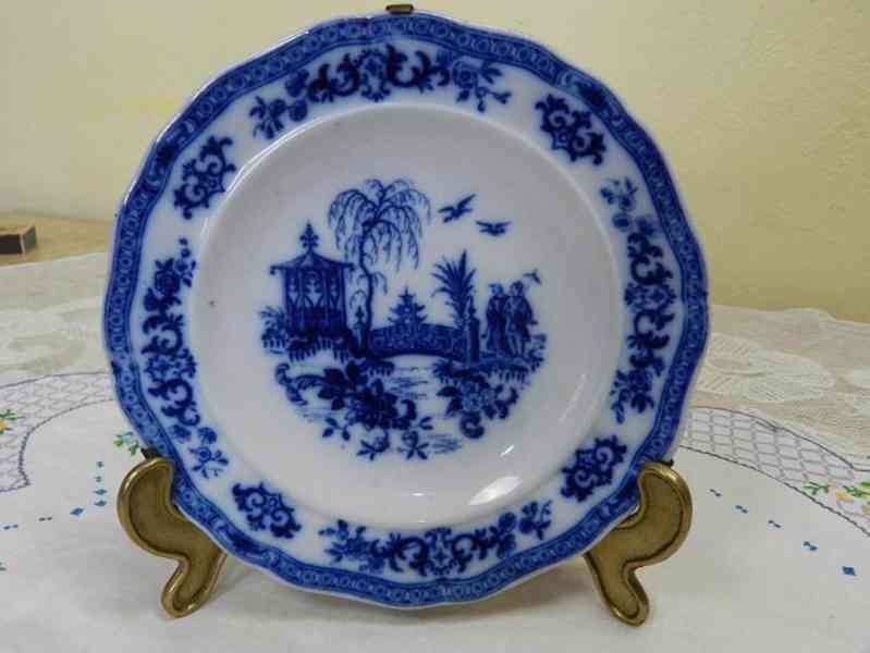 Hezký vzácný kobaltový Talíř s čínskými motivy - Slavkov, staré Rakousko, dvojí značení, kolem 1900.Rozměry: průměr 19cm, hmotnost 330g.