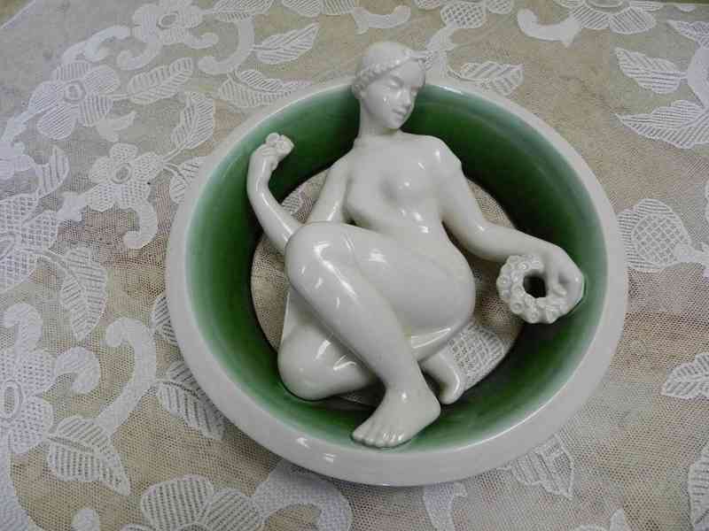Keramický reliéf, alegorická postava dívky - Československo, 2 pol. 20 stol, značeno.Rozměry: výška 10,5cm, šířka 31,5cm.