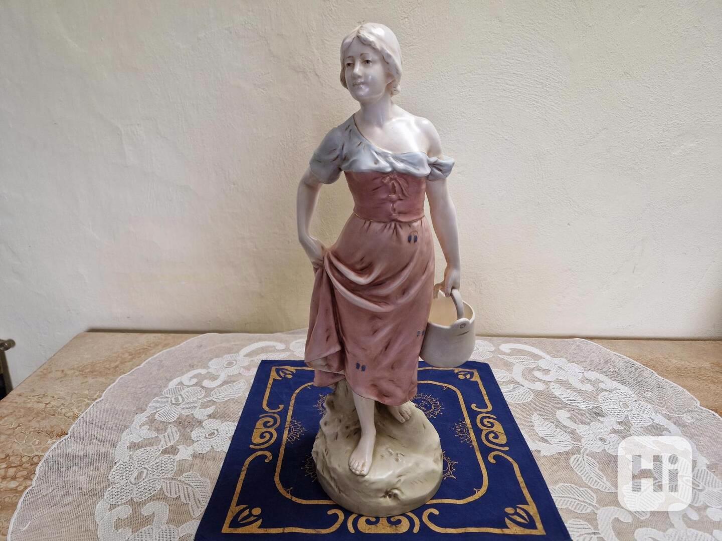 Krásná secesní porcelánová plastika Dívka s Košem Royal Dux