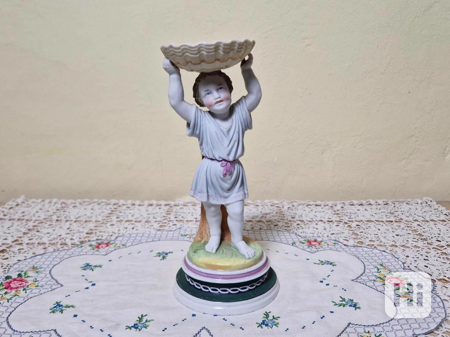 Krásná porcelánová plastika Chlapec s mušlí, biedermeier - Horní Slavkov, 19 stol.
