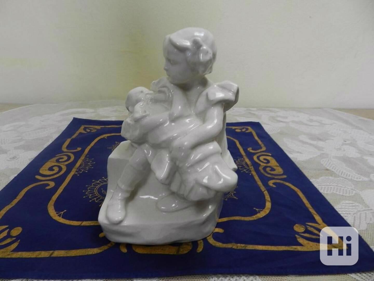 Hezká keramická Soška, Děvčátko s Miminkem, glazováno, bílá barva - Bechyně, Značeno, 1 pol. 20 stol.