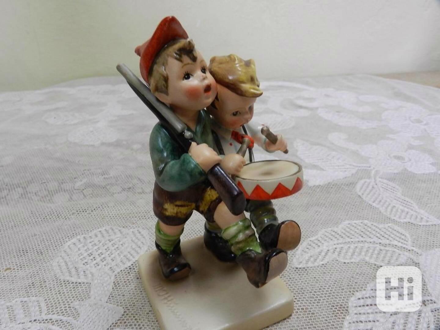 Krásné porcelánové sousoší, Hra na Vojáky - Signováno, Značeno, Goebel Hummel Germany, původní plastika ze 30 lét 20 stol.