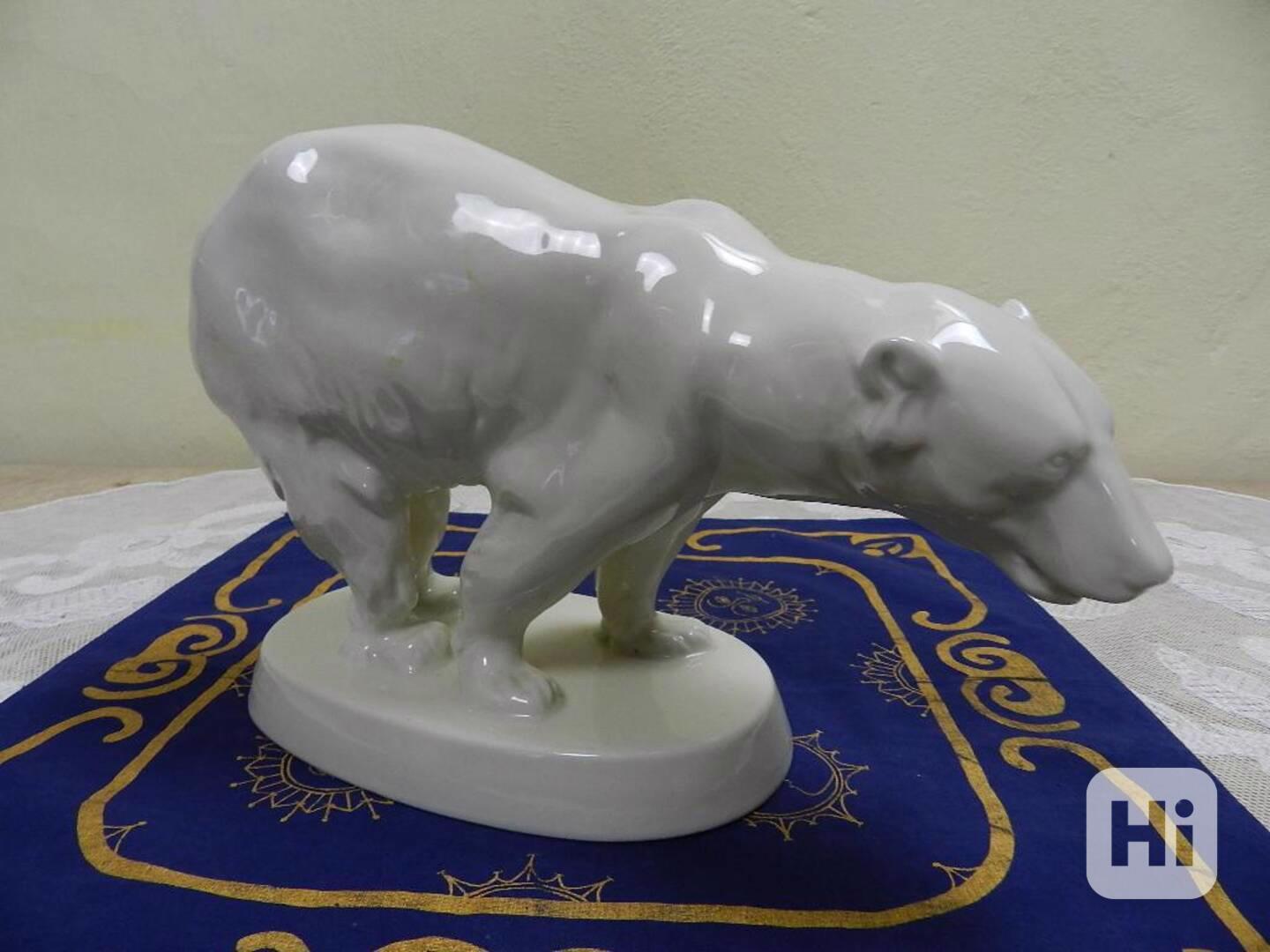 Porcelánová Soška Ledního Medvěda - PirkenHammer Březová, Signováno na zadní straně soklu Moldenhauer, 1 pol. 20 stol.Výška 21,5cm, délka 33cm, hmotnost cca 1900g.