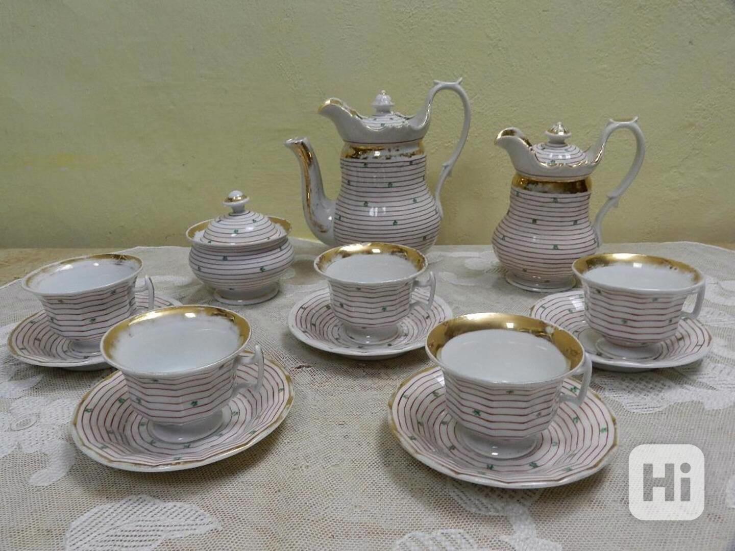 Krásný velmi starý kávový servis s pruhy, 5 osob - Značeno, Carlsbad, kolem pol. 19 stol.