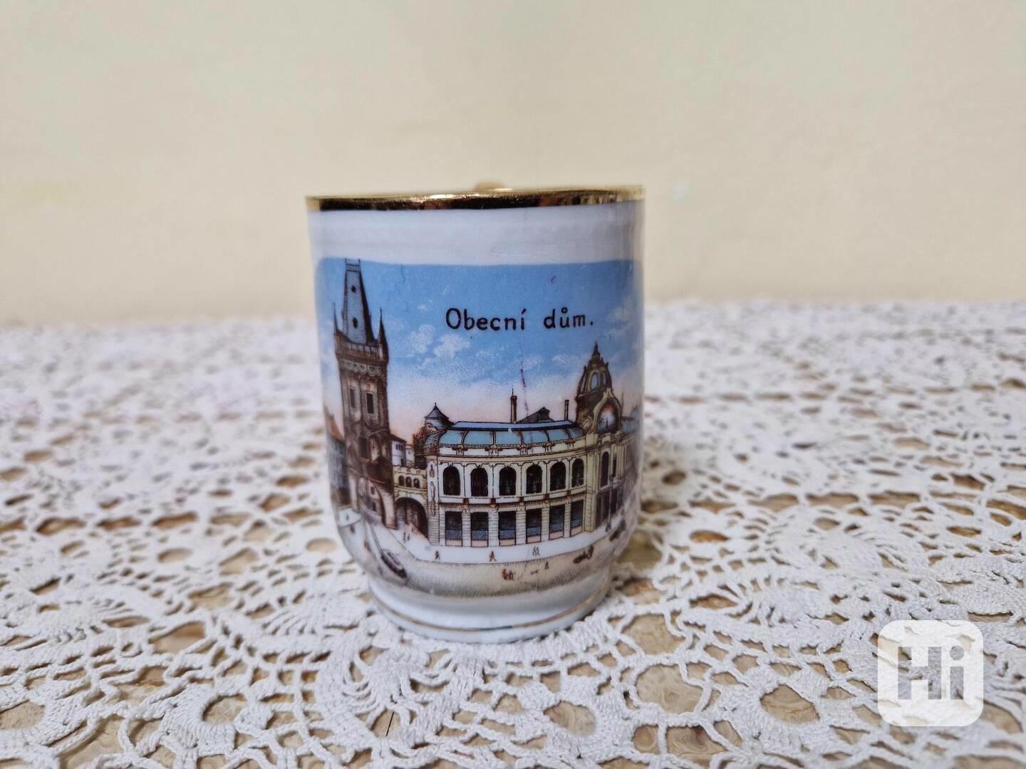 Sbírkový starý zlacený porcelánový Hrnek, Top Stav, RU - Pozdrav z Prahy. Obecní Dům.