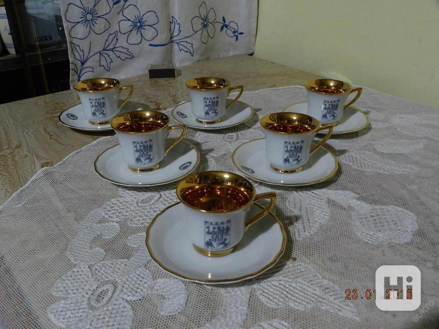 Luxusní sada 6 zlacených sběratelských hrnků s podšálkem - EX PLZEŇ - MZ Czechoslovakia.