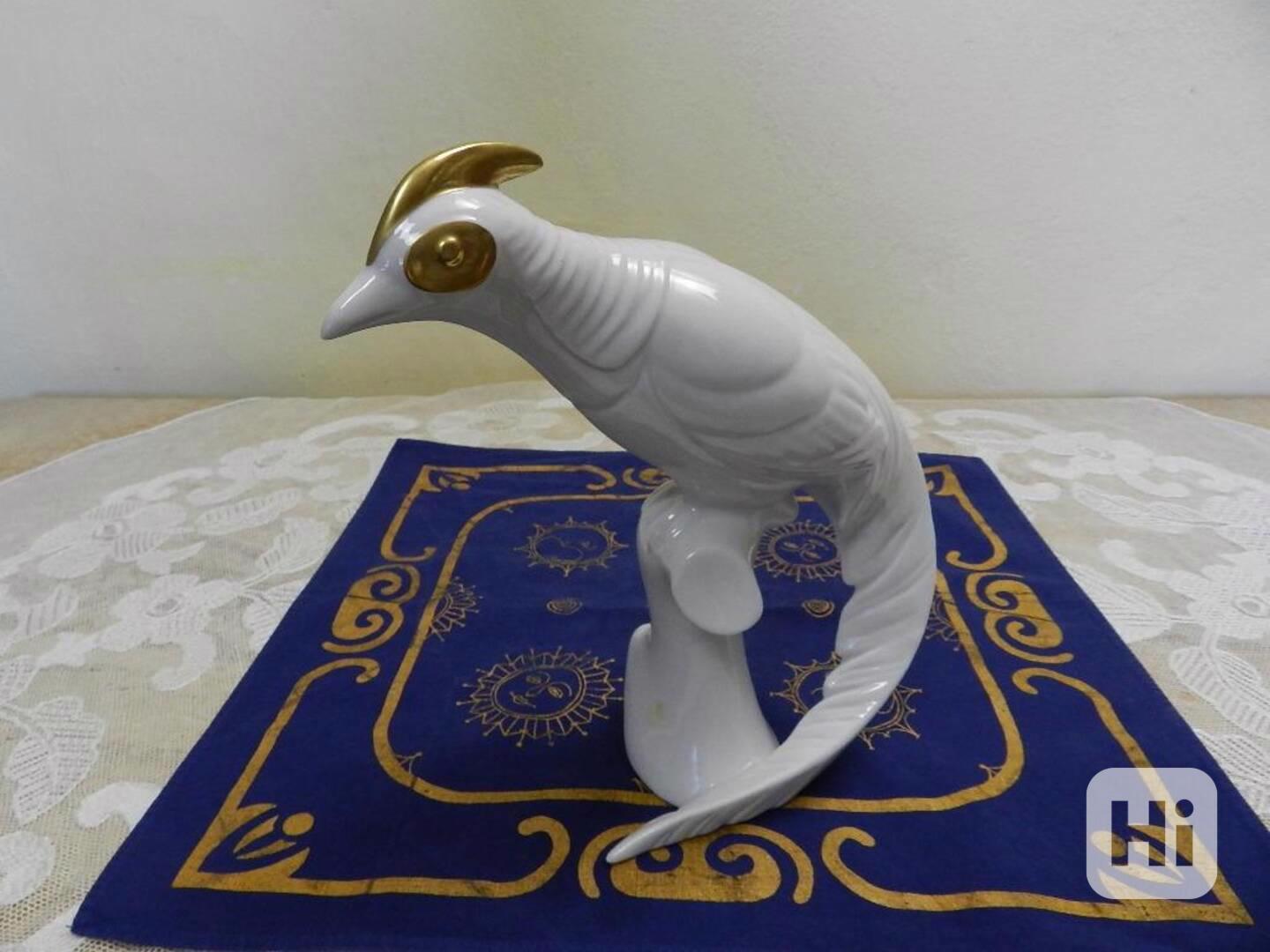 Krásný stylový zlacený Pták - Značeno, Royal Dux, Czechoslovakia, Signováno, kolem 70 let 20 stol.