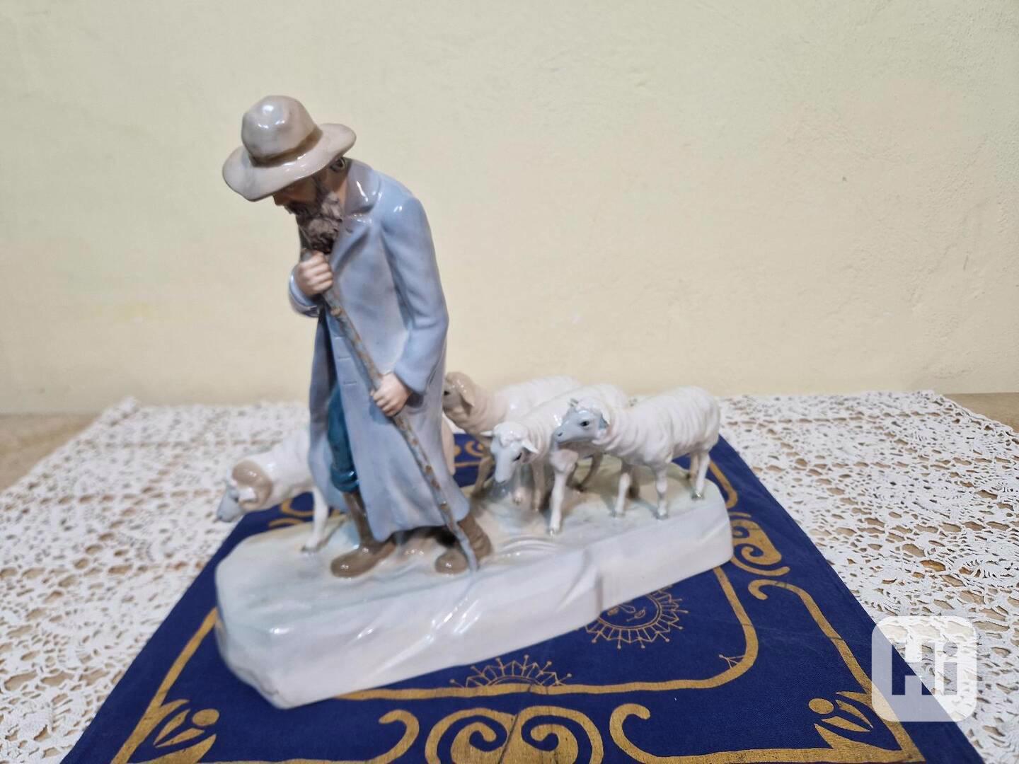 Krásné staré malované Sousoší Pasáček a Ovečky Dux