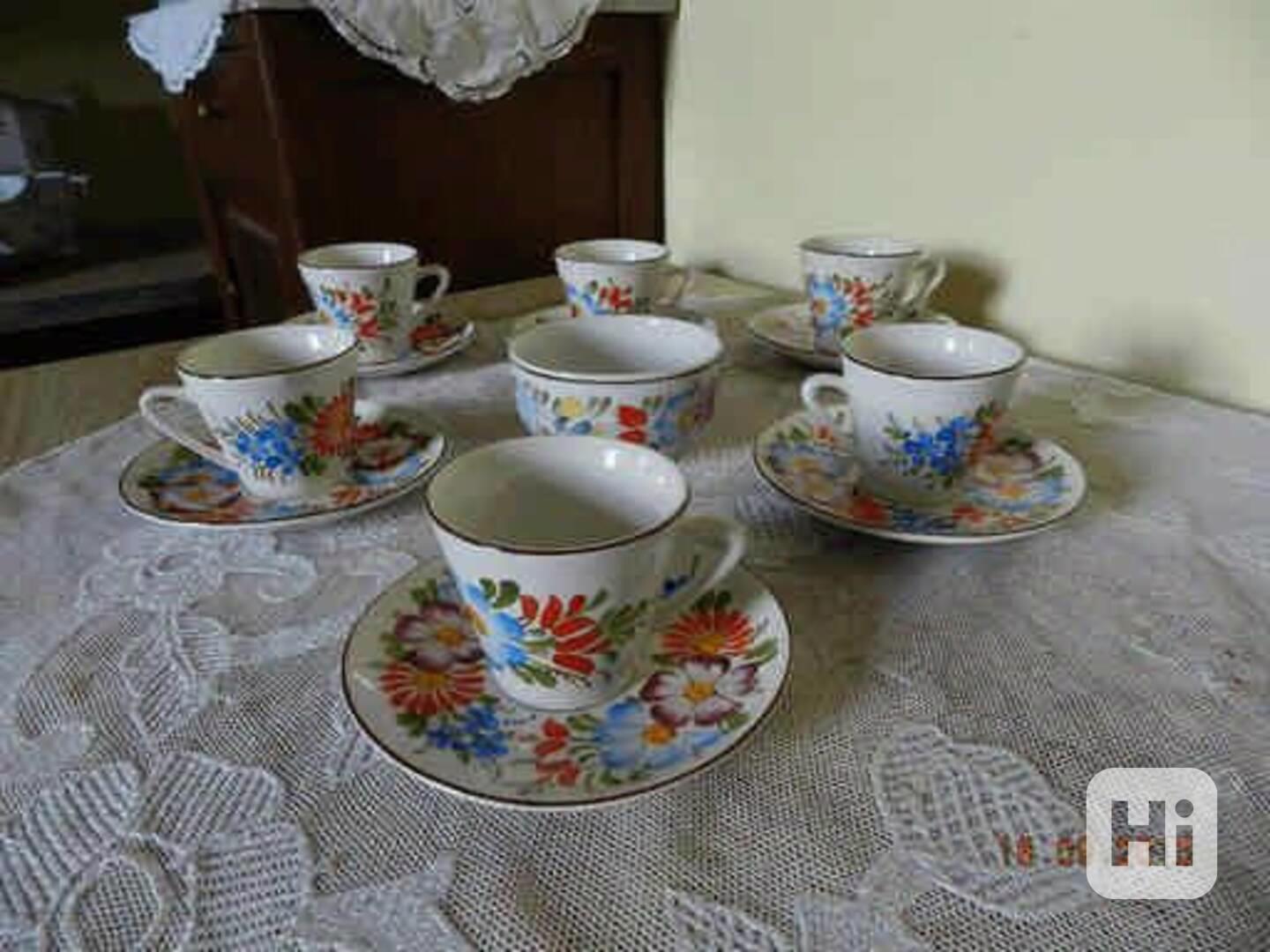 Krásný starý malovaný set 6 hrnků s podšálky a misky - Ditmar Urbach Czechoslovakia.
