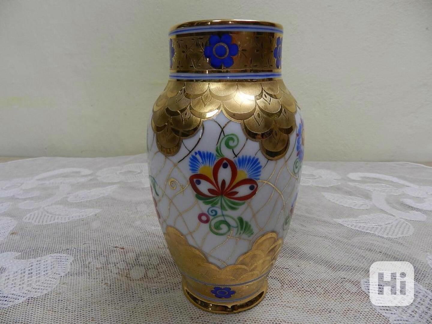 Krásná ručně malovaná porcelánová Váza, bohaté zlacení, Top Stav - Stará Role, malírna Telč.