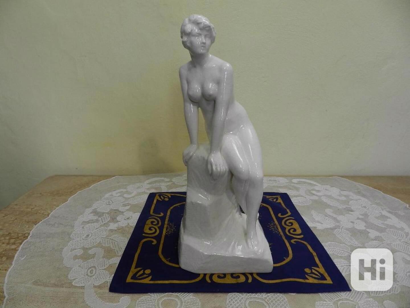Krásná větší keramická Socha Dívka Akt Bechyně