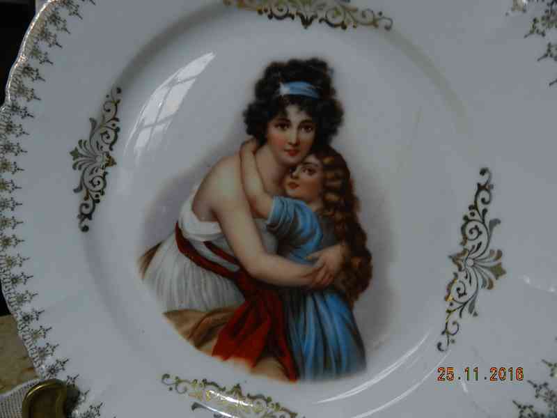 Krásný starý dekorační Talíř Matka a Dcera MZ Altrohlau CMR 1918-1922.Rozměry: průměr 25cm, výška 3cm, váha 480g.