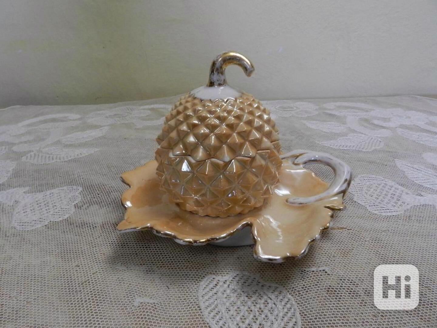 Porcelánová zlacená Dóza ve tvaru ananasu - Značeno A, Aichwald, Doubí u KV, 1849-1859.