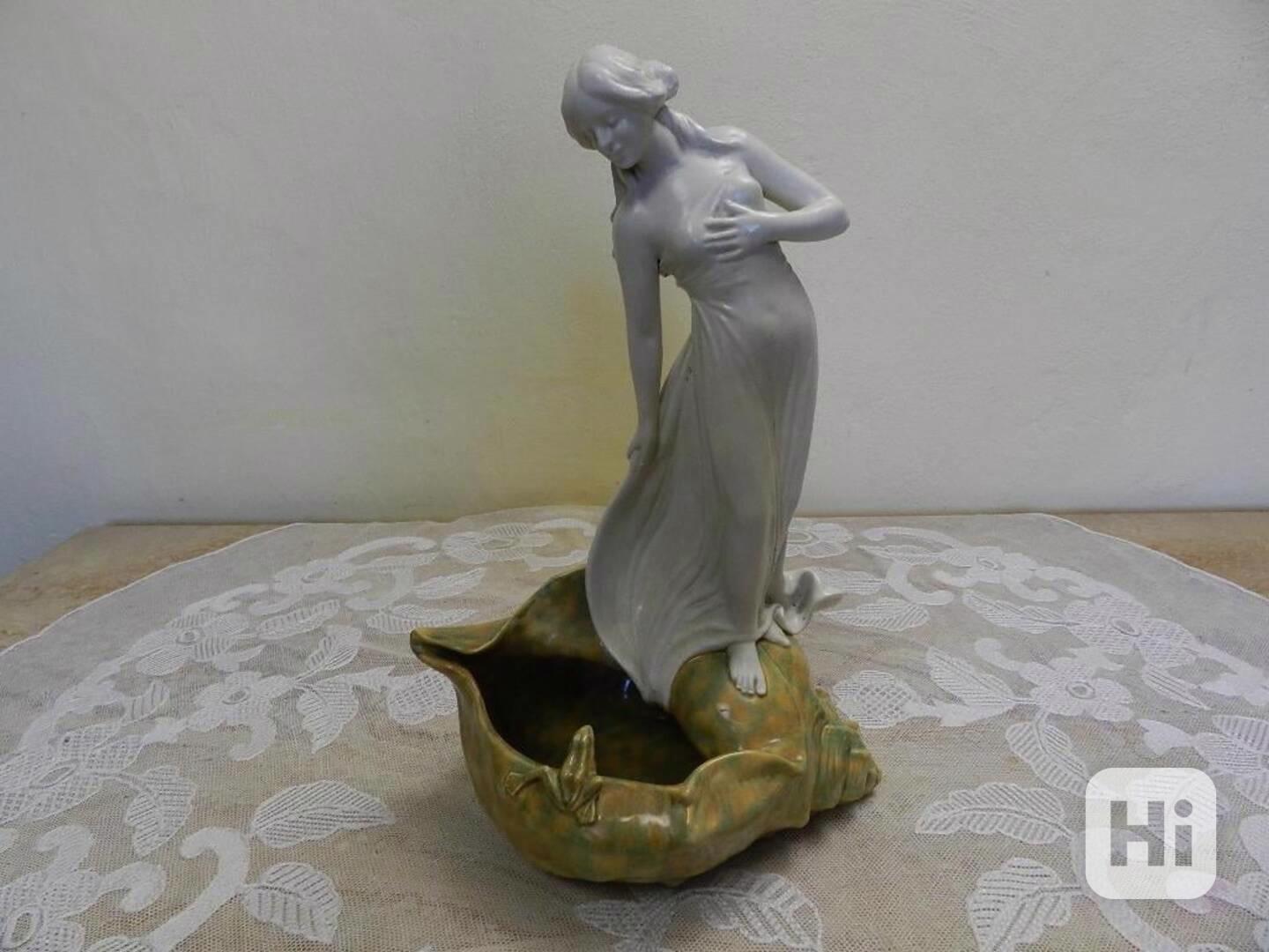 Krásná secesní figurální miska ve tvaru mušle - Royal Dux, Signováno, kolem 1900.