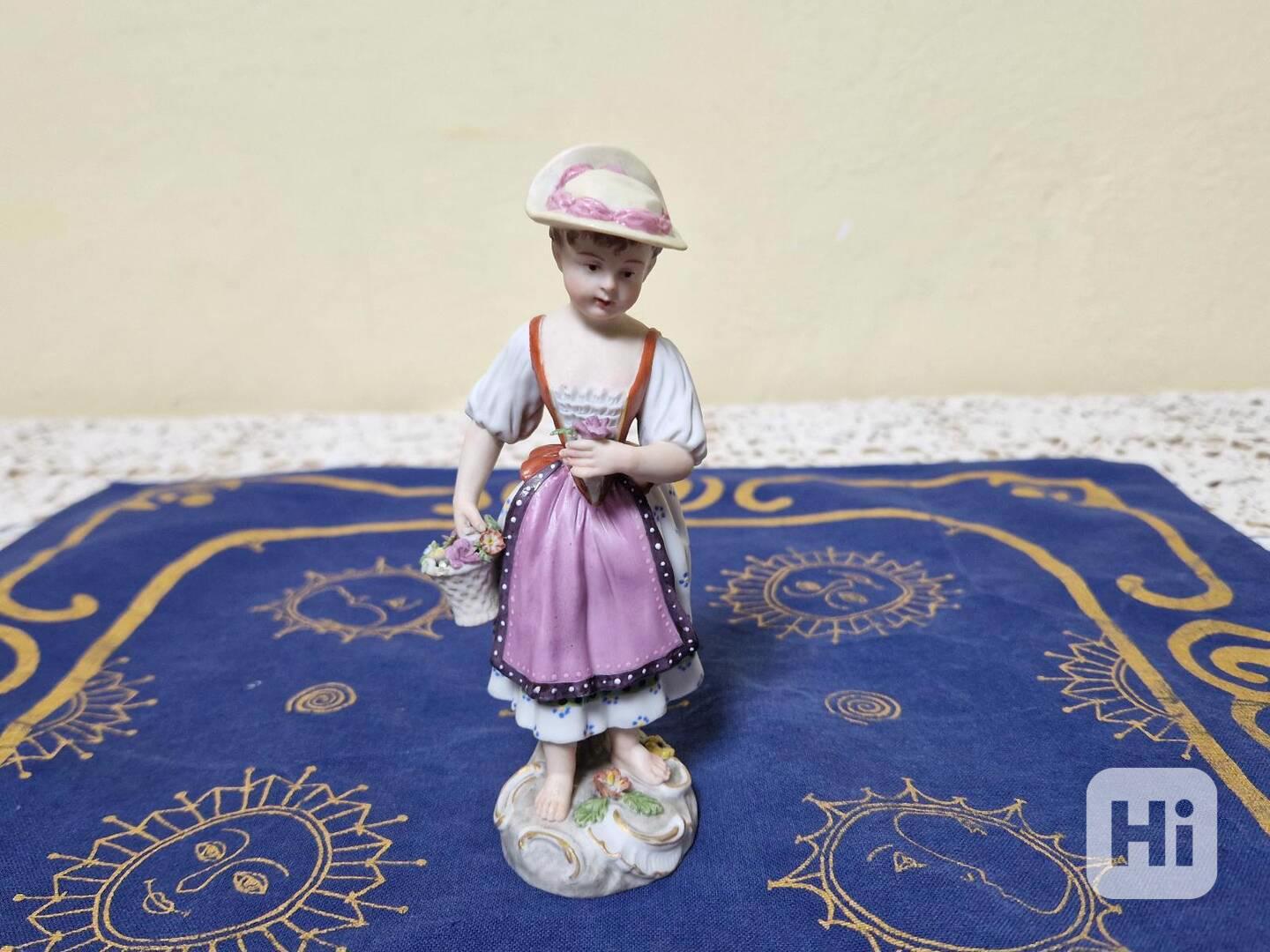 Hezká porcelánová soška Dívka s Květinami Praha Biedermeier