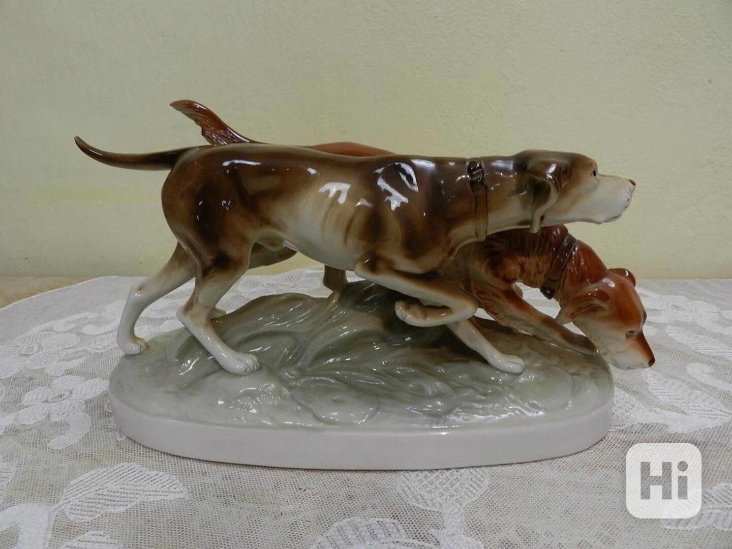 Krásná větší porcelánová soška, Lovečtí Psi - původní série z 60 let 20 stol, Royal Dux Czechoslovakia.