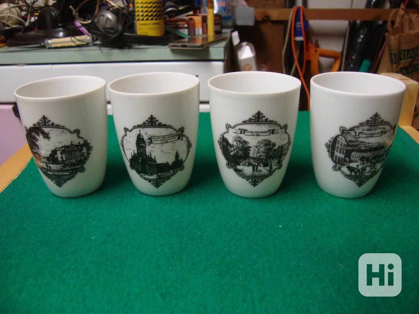 Prodám tyto starožitné, porcelánové pohárky značky Wallendorf. Krásně značené W1764, pohárky jsou v krásném stavu, nikde prasklina, ani náznak odštípnutí. Super, sběratelský stav, vhodné na dekoraci, nebo používání. Na pohárcích je znak města Berlín a na druhé straně jeho známé pamětihodnosti. Je tam Státní opera, Platz der Akademie, Unter den Linden a Alexanderplatz. Cena platí za všechny pohárky dohromady.